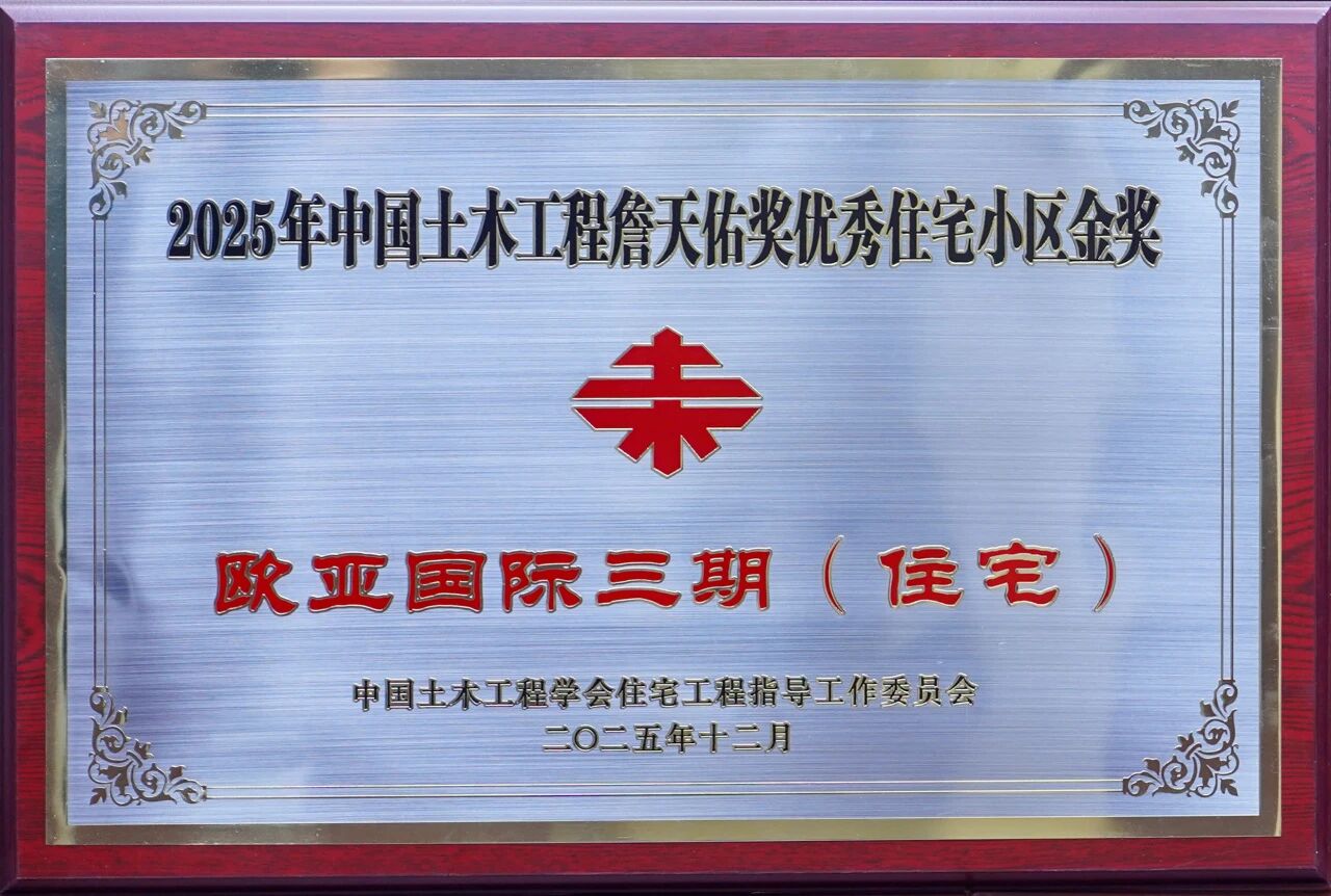 近日,备受业界瞩目的中国土木工程(住宅小区类别)评选结果正式揭晓,由普迈项目管理集团有限公司承担监理服务的欧亚国际三期(住宅)工程成功荣获2025年中国土木工程詹天佑奖优秀住宅小区金奖!