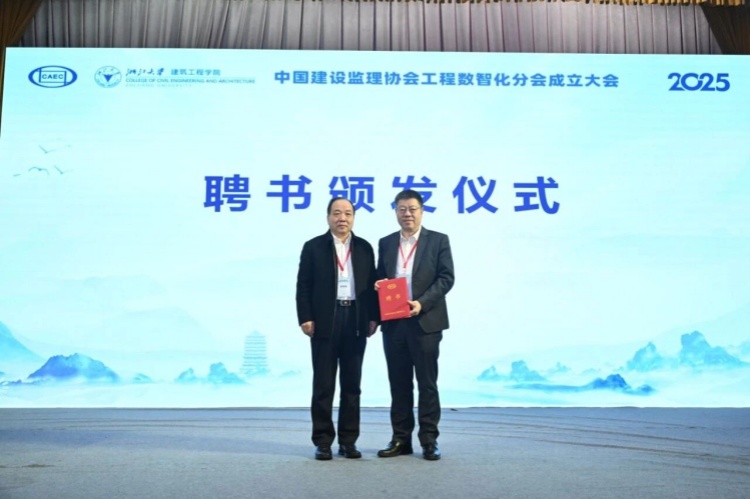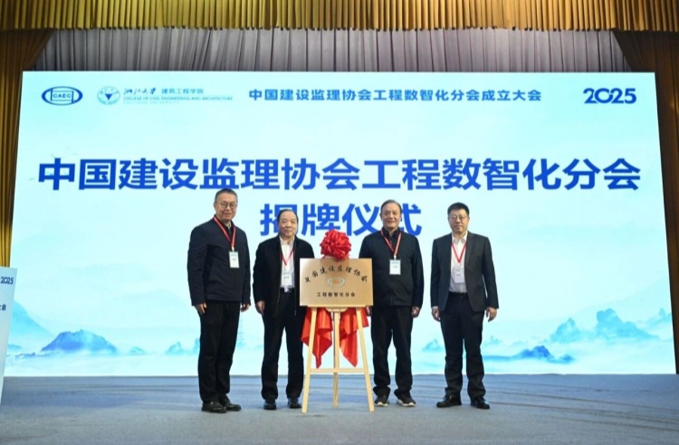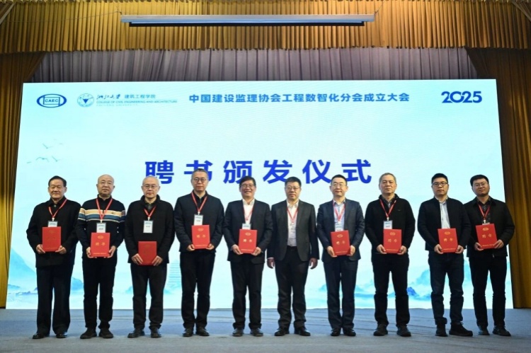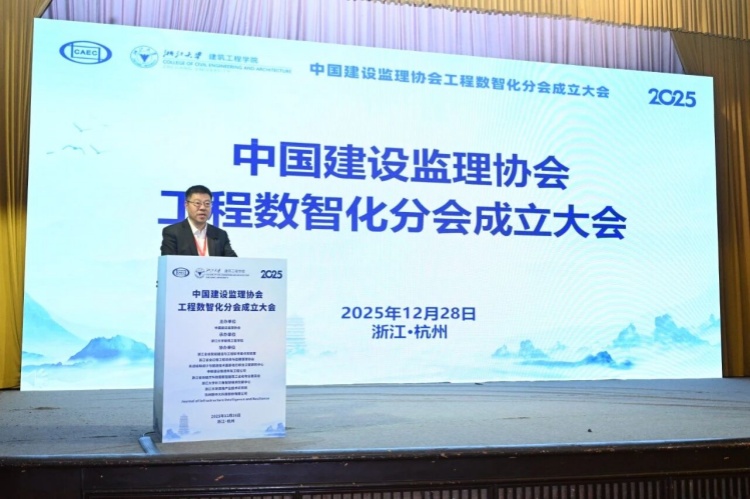 2025年12月28日,中国建设监理协会工程数智化分会成立大会在杭州召开。会议由中国建设监理协会主办,浙江大学建筑工程学院承办,浙江全省智能建造与工程软件重点实验室、浙江省全过程工程咨询与监理管理协会、先进结构设计与建造技术国家地方联合工程研究中心、中铁建设集团华东工程公司、浙江省住建厅科技委新型建筑工业化专业委员会、浙江大学长三角智慧绿洲创新中心、浙江大学滨海产业技术研究院、杭州新中大科技股份有限公司、基础设施智慧与韧性(英文)期刊编委会共同协办。
